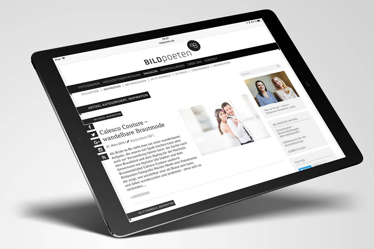 Die Bildpoeten bieten exklusive Hochzeitsfotografie mit künstlerischem Anspruch. Der Zusammenschluss der besten Hochzeitsfotografen im deutschsprachigen Raum beauftragte uns mit der Entwicklung ihrer umfangreichen Website.
