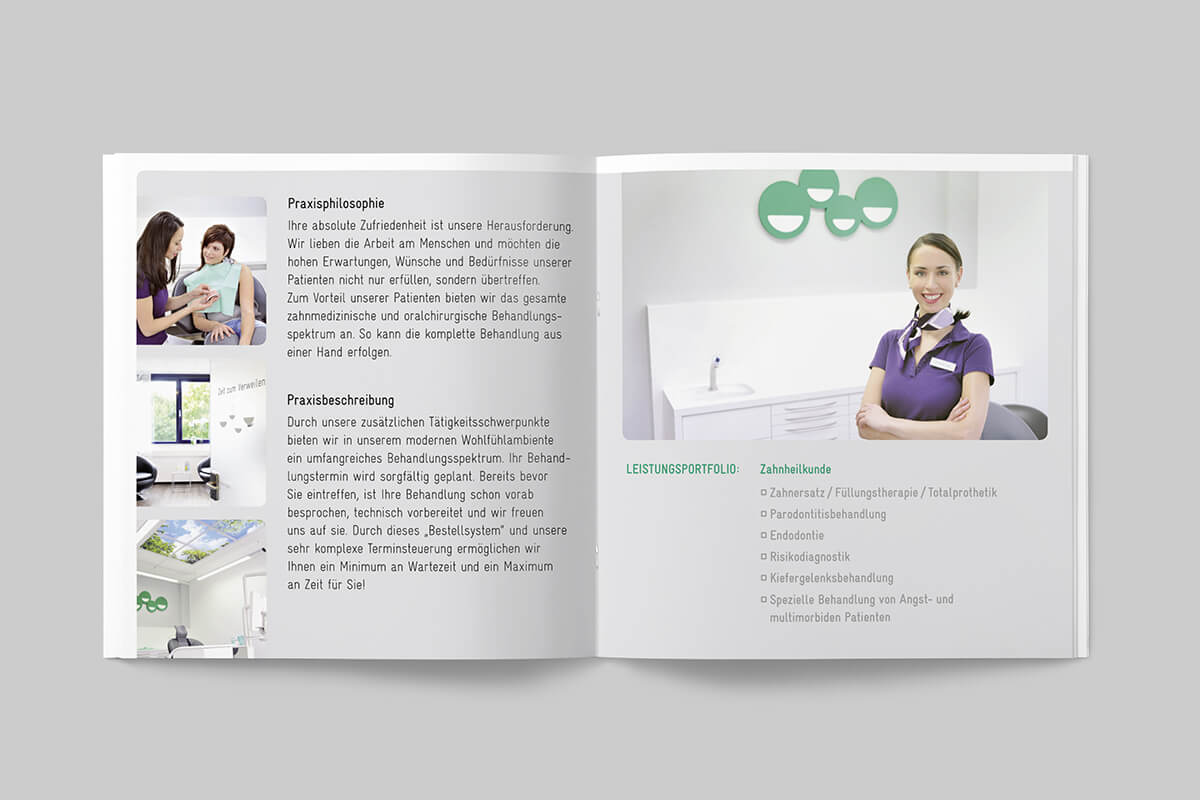 Gelungenes Praxismarketing mit klarer Botschaft und modernen einheitlichen Look.